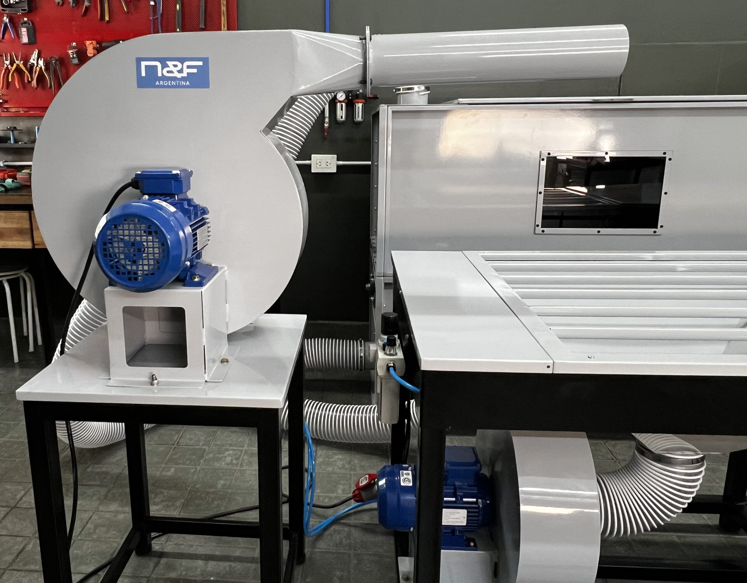 - Sistema neumático con lubricación automática: Equipado con un FRL (Filtro, Regulador y Lubricador) para prolongar la vida útil del equipo.