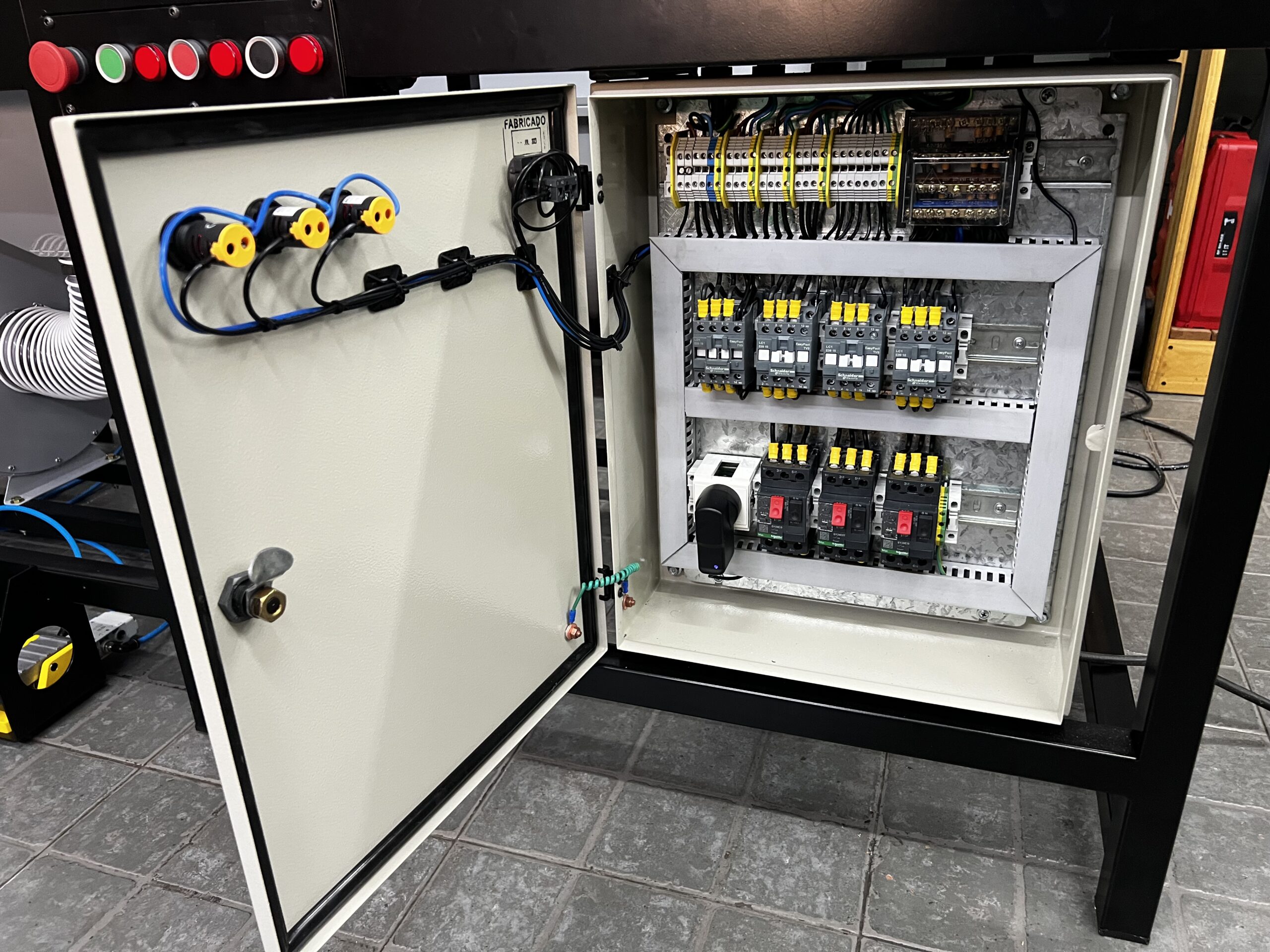 - Seguridad avanzada: Incluye botón de parada de emergencia, guarda motores trifásicos y pilotos de presencia de fase.