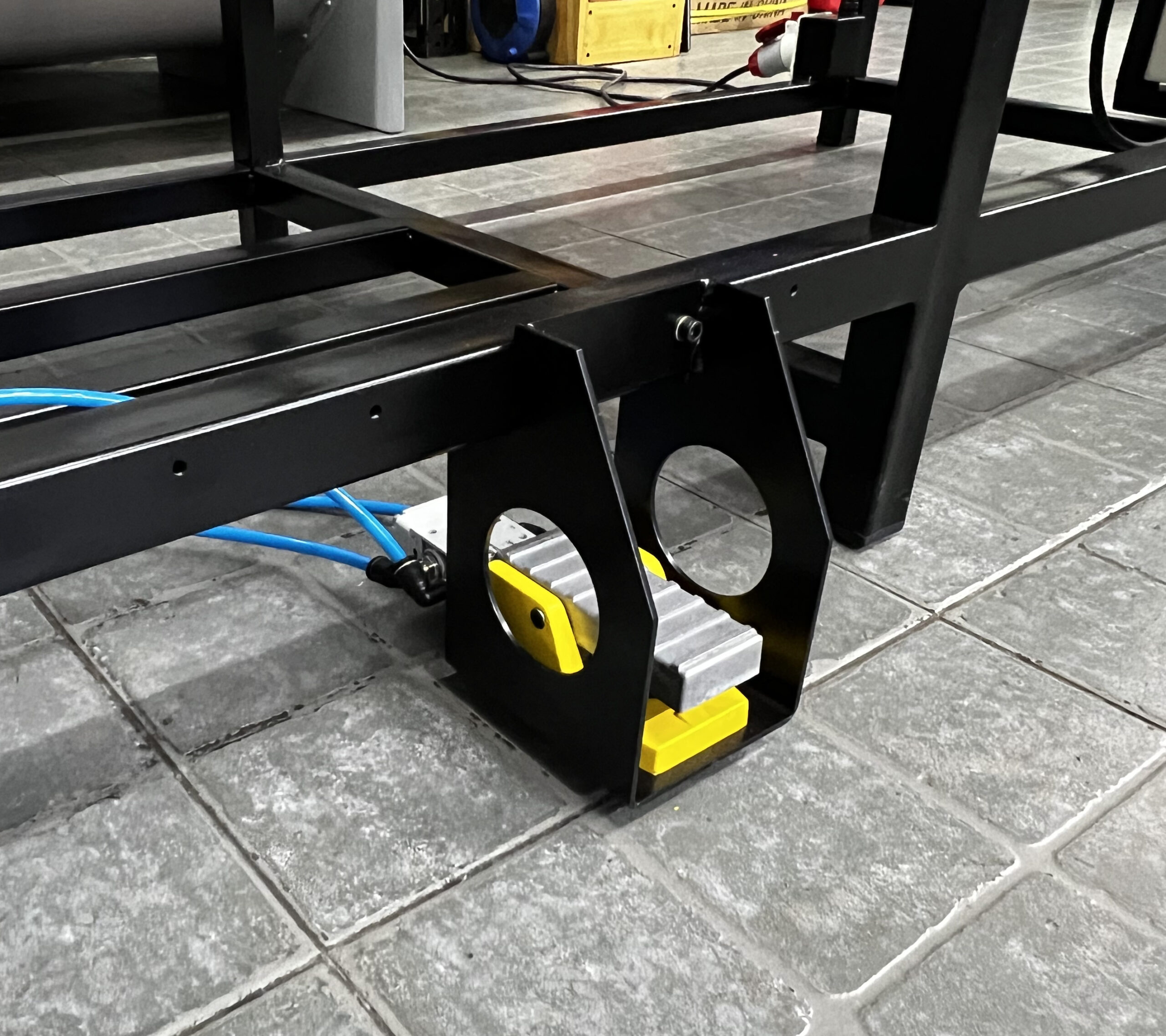 - Pedal neumático ajustable: Control ergonómico que puede reubicarse según las necesidades del operario.